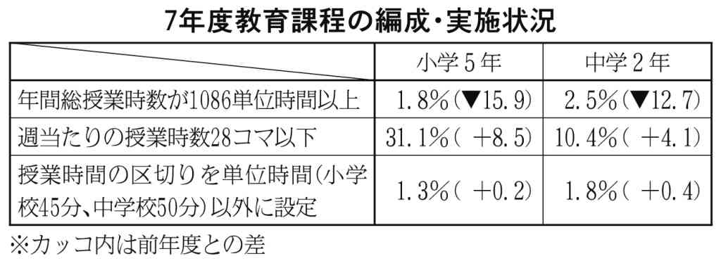 文科省 教育課程編成調査 授業の過密解消進む 週28コマ以下の小学校 31%に