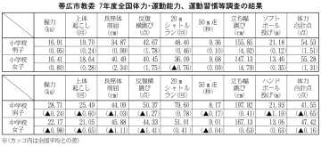 帯広市教委 7年度全国体力等調査 小学校男女 全国平均超 体力合計点 男子4年連続