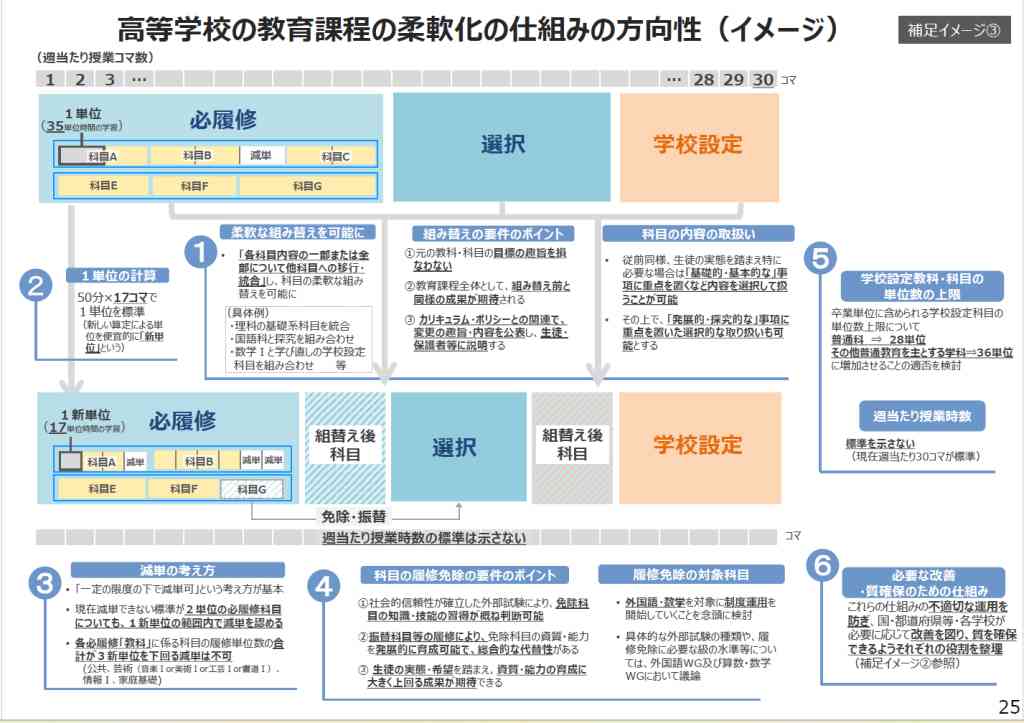 中教審 高校単位制を柔軟化 1単位標準 17コマに 科目組替、履修免除導入