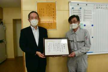 建設企業に感謝状 岩見沢小 駐車場ライン引きで